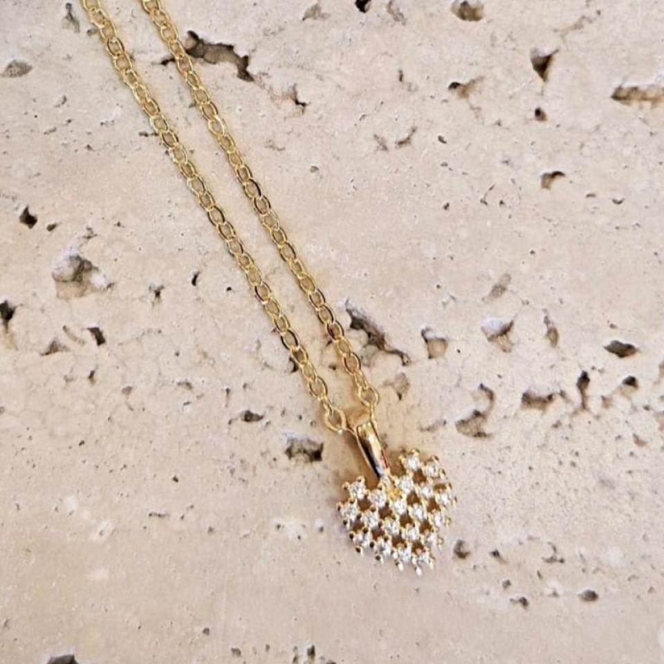 Gargantilha Coração Quadriculado Cravejado 45cm