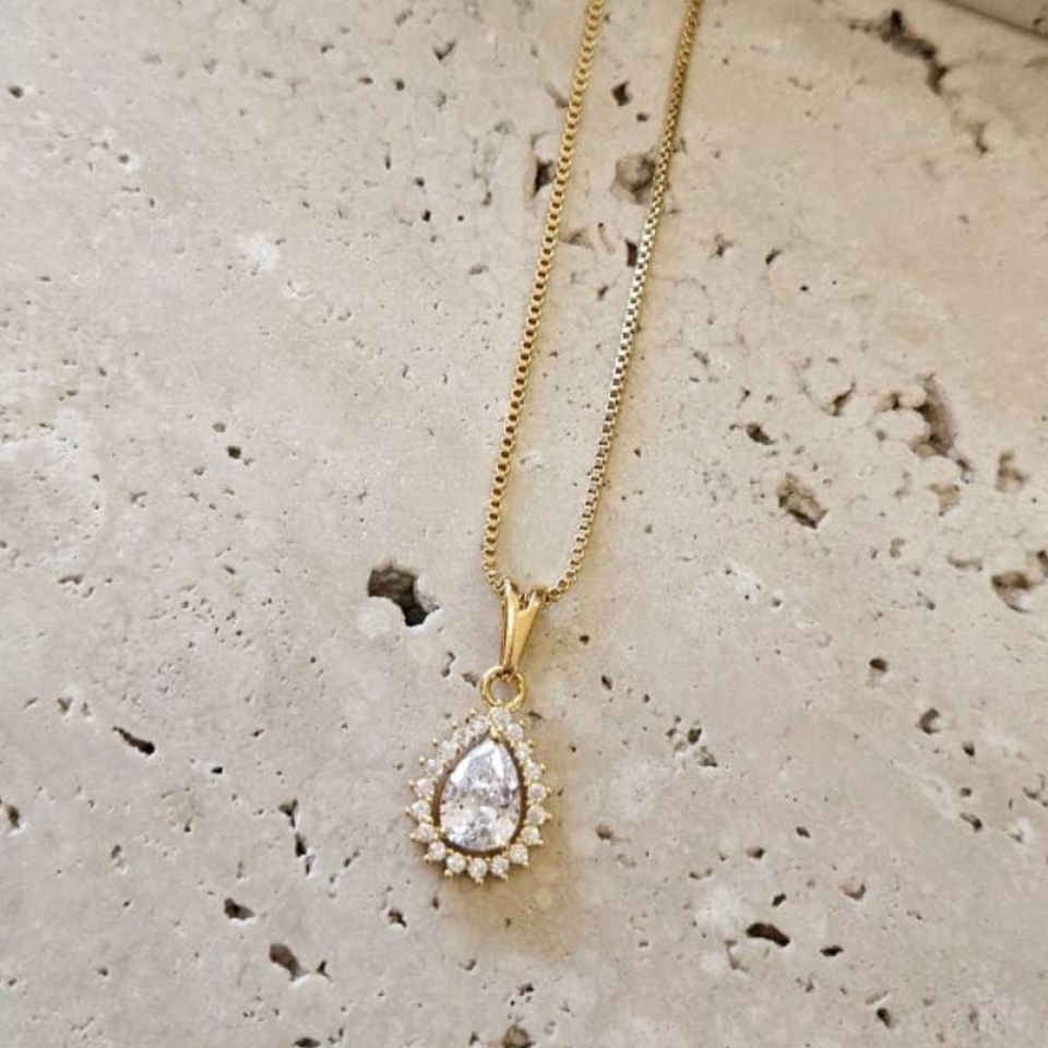 Gargantilha Gota Com Volta Trabalhada Zircônia 45cm