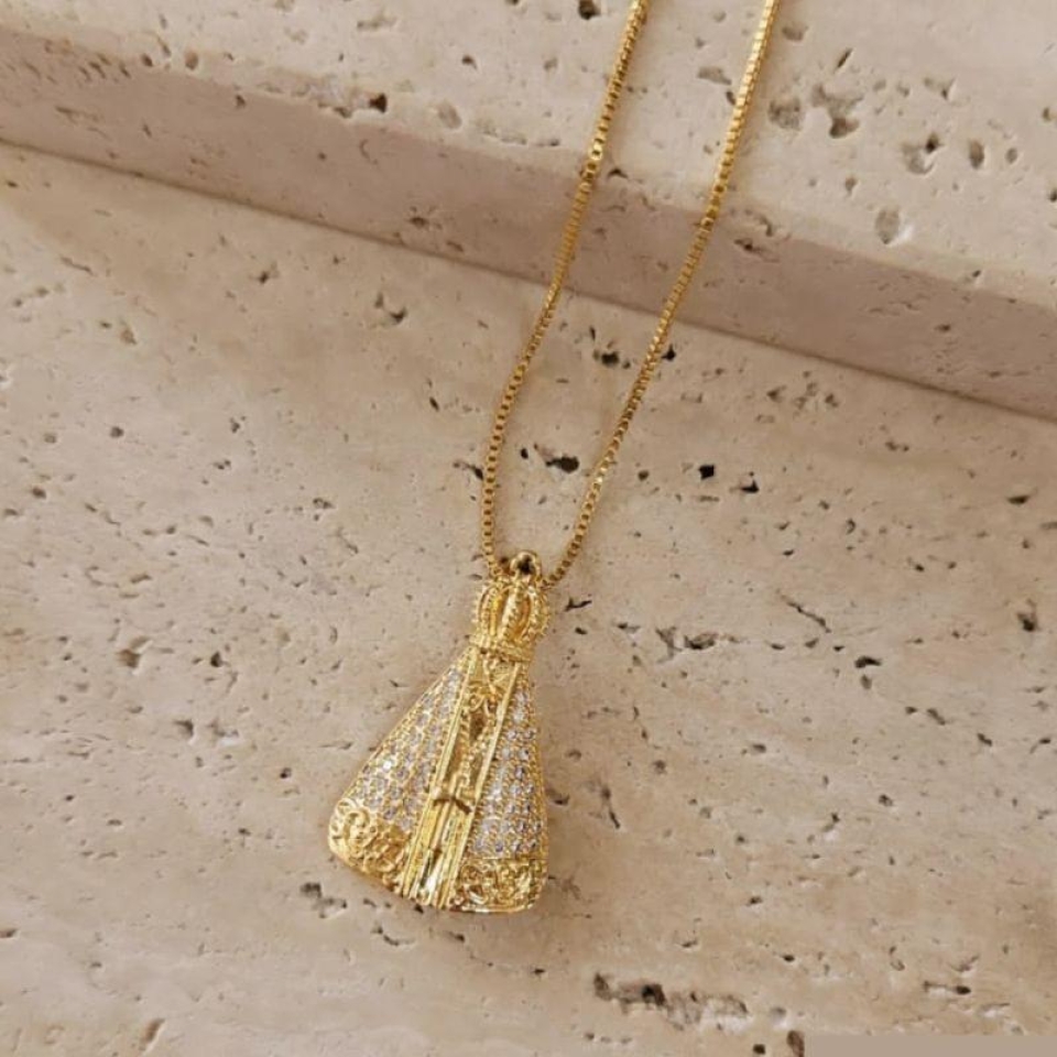 Gargantilha Nossa Senhora Cravejada Cristal Media 50cm