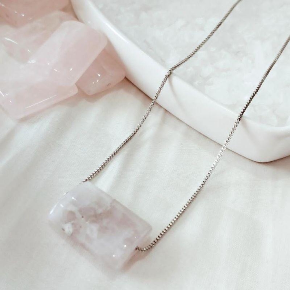 Gargantilha Pedra Natural Quartzo Rosa 45cm