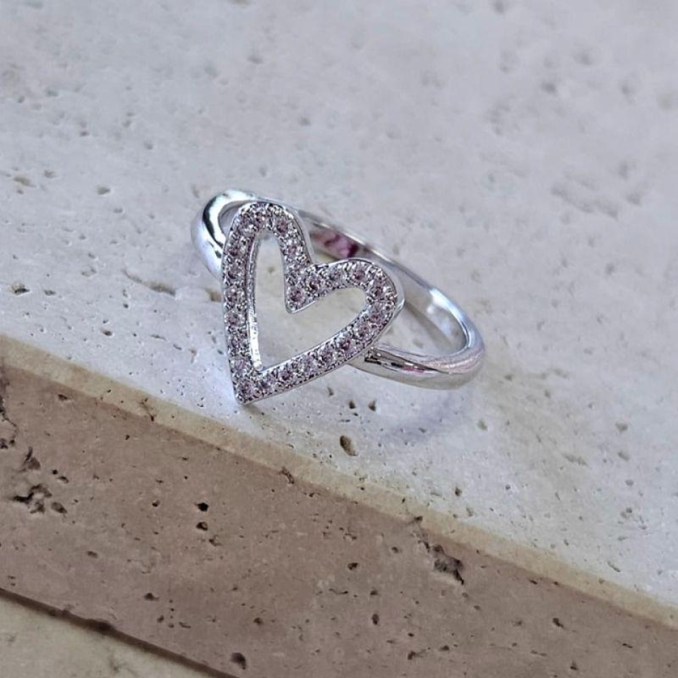 Anel Coração Cravejado Vazado