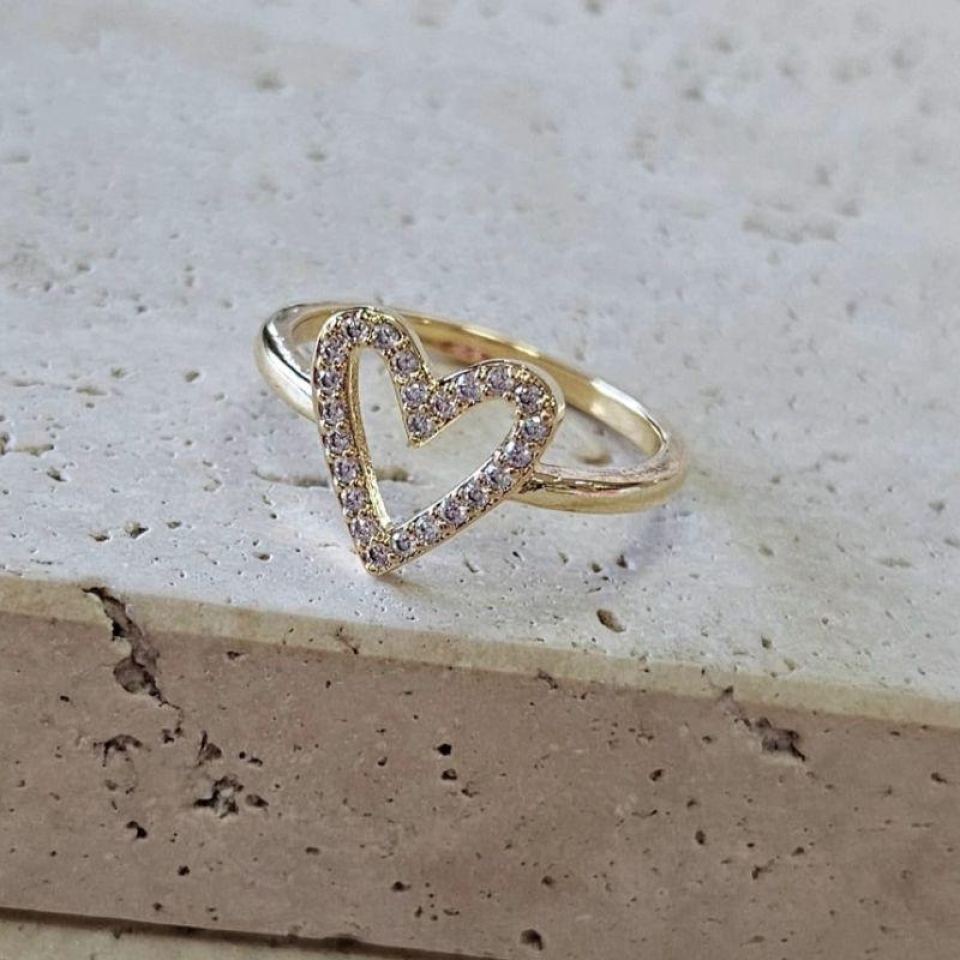 Anel Coração Cravejado Vazado