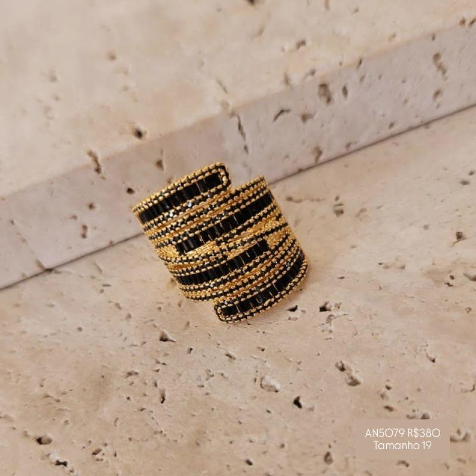 Anel Cravejado Zirconia e Navete Negra