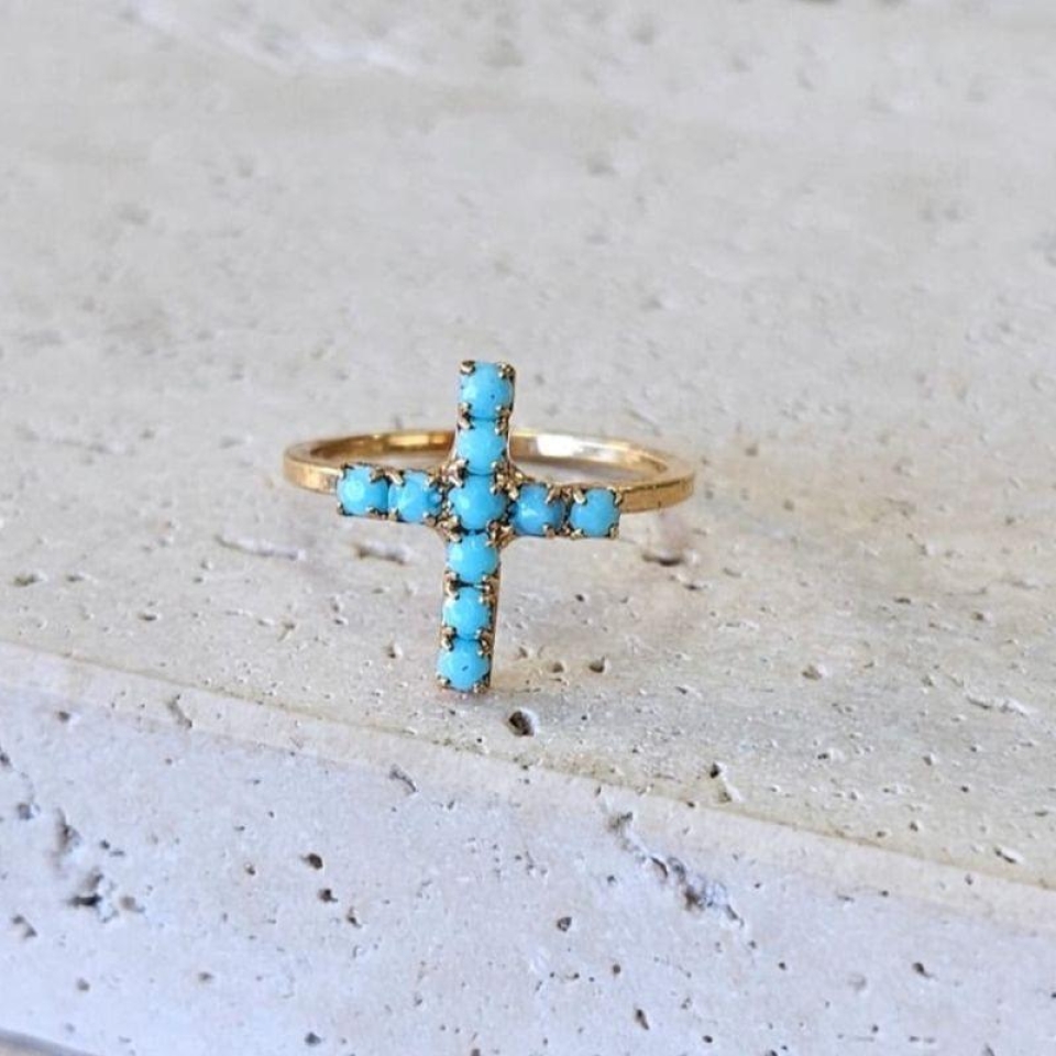 Anel Cruz c/ Strass Turquesa