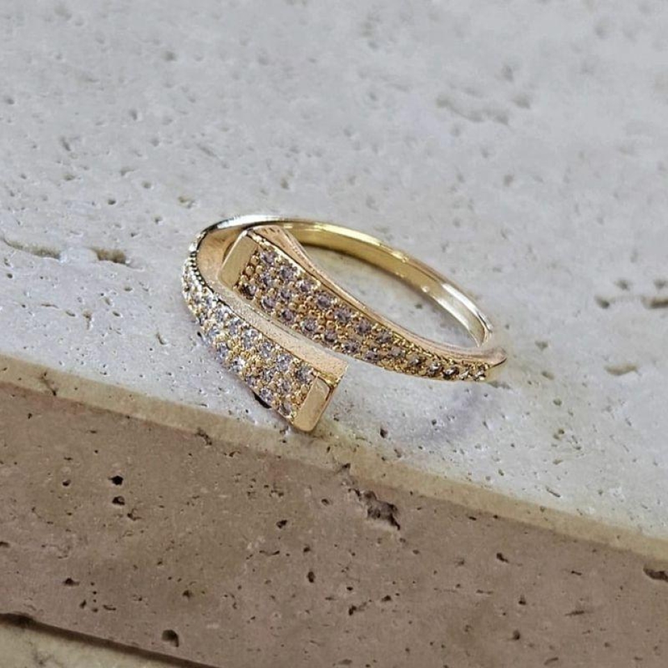 Anel Duplo Pontas Quadradas Cavejado