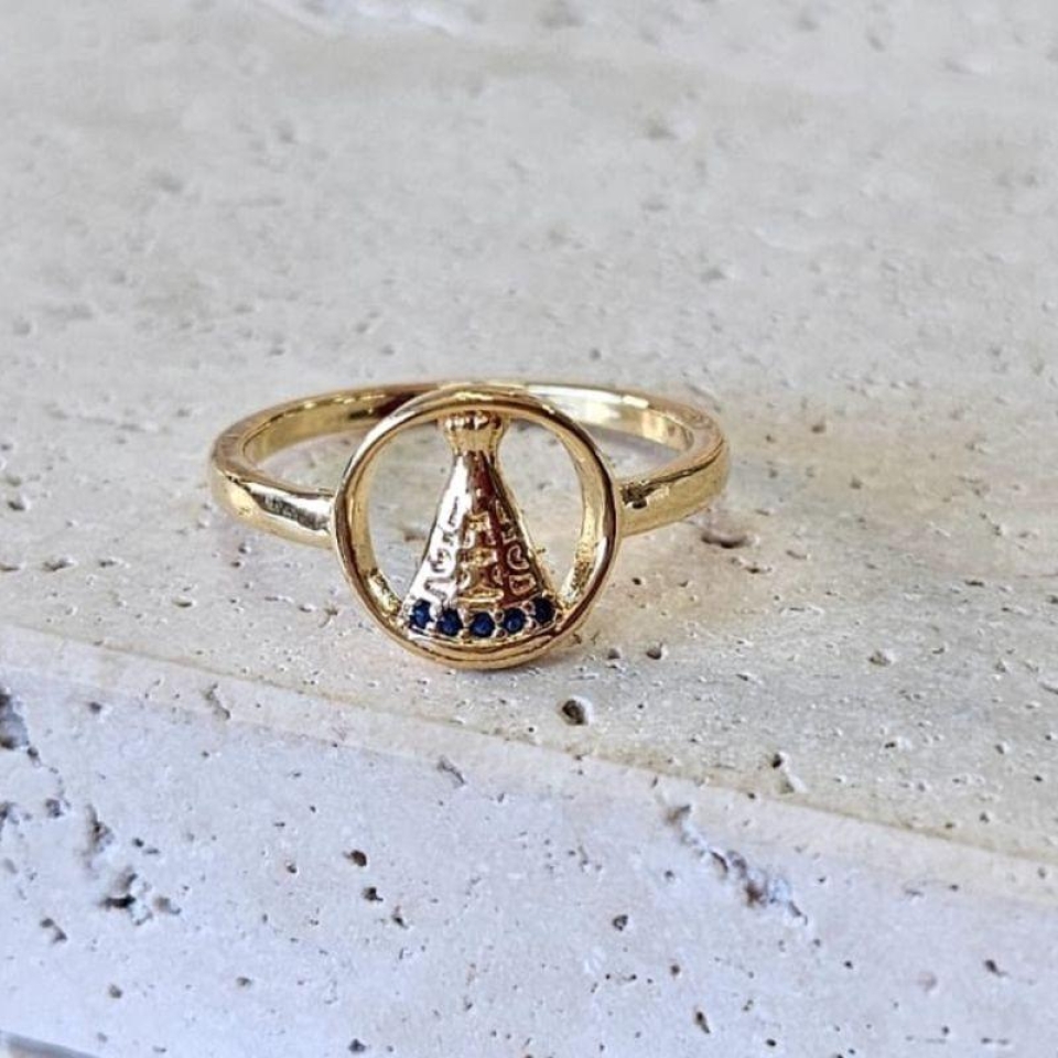 Anel Nossa Senhora Cravejado Zirconia Azul