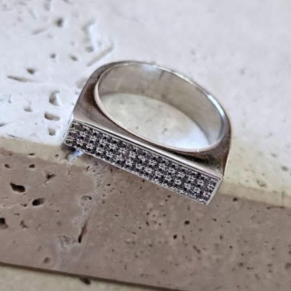 Anel Quadrado Grosso Cravejado