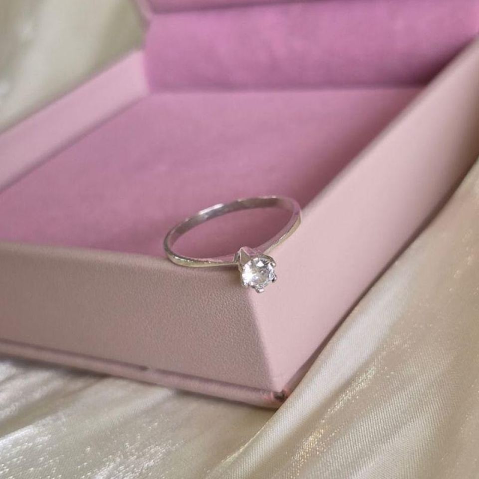 Anel Solitario Caixa Alta Prata N18