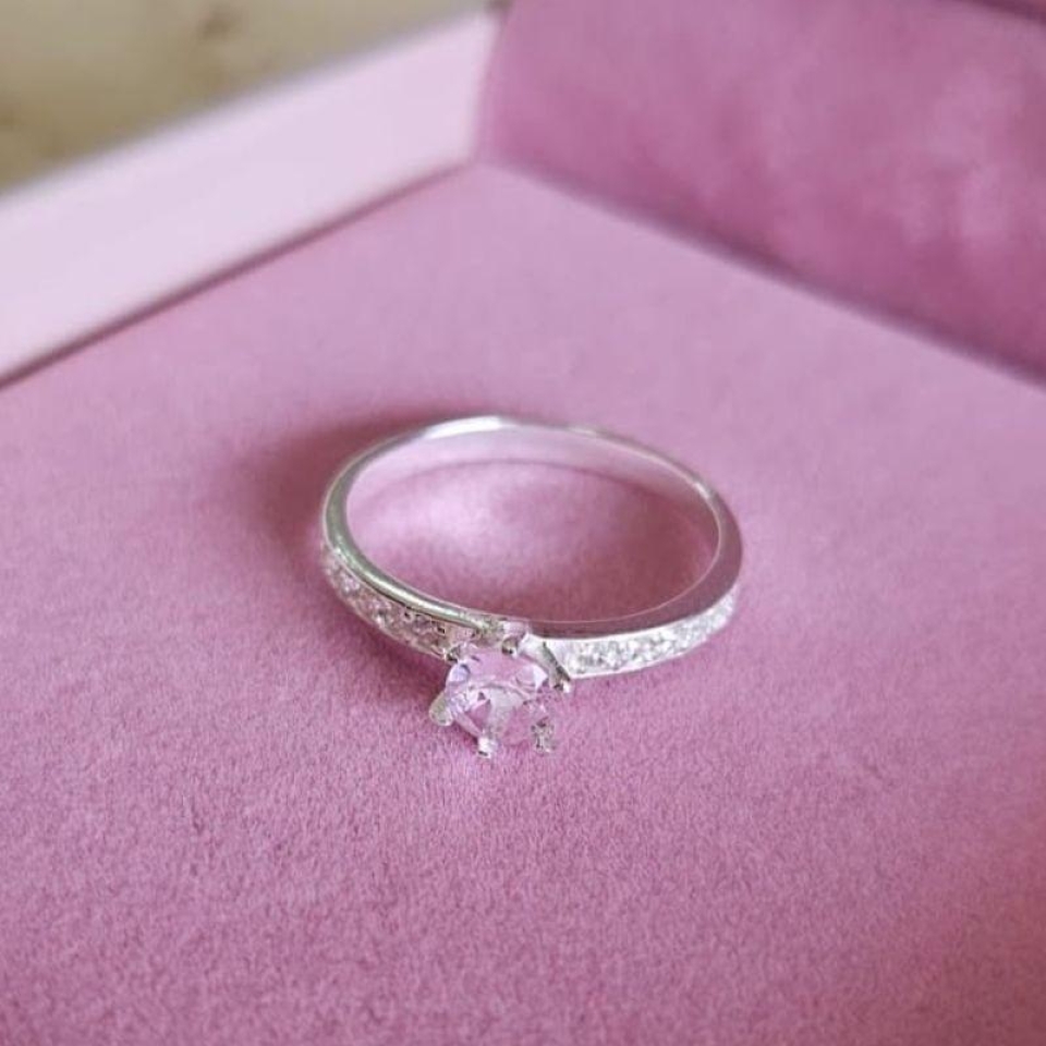 Anel Solitario Cravejado Pedra Rosa Prata