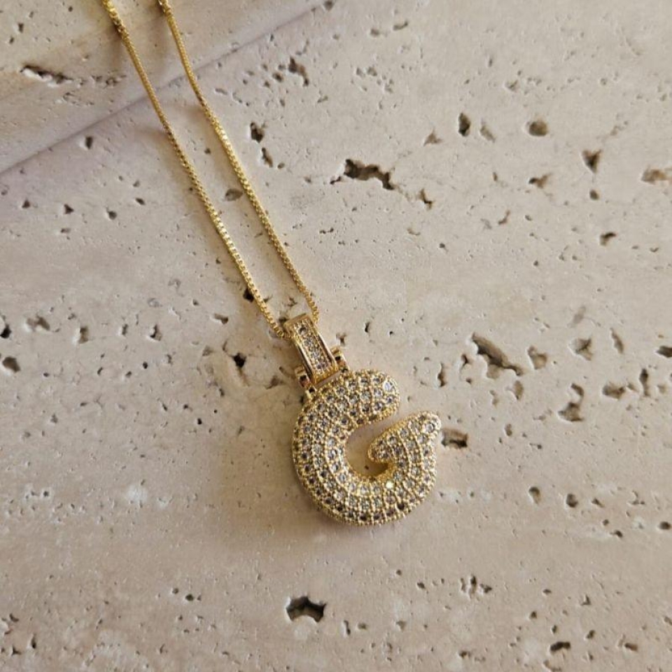 Gargantilha Inicial G Puffer Cravejada 45cm