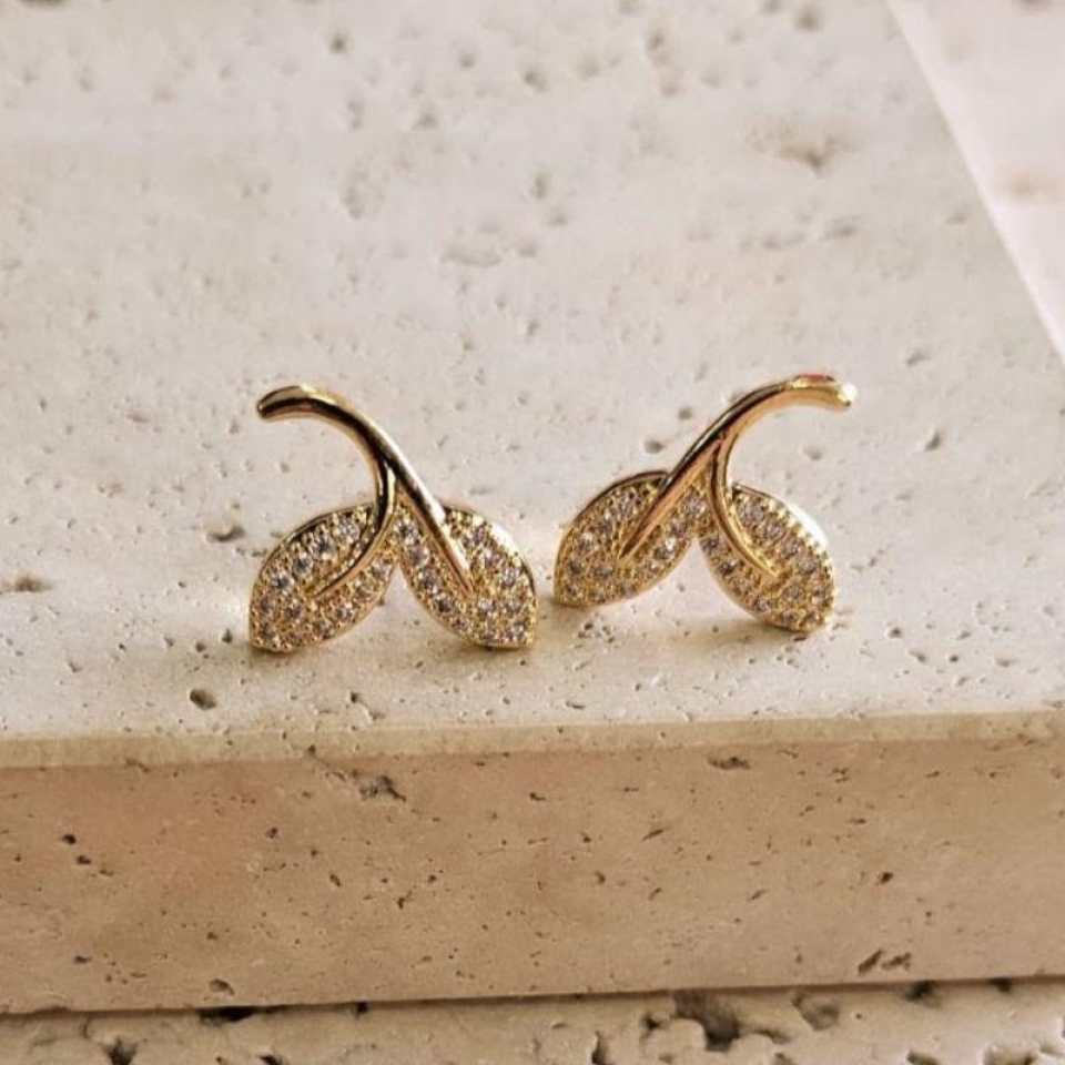Brinco 2 Folhas Cravejadas