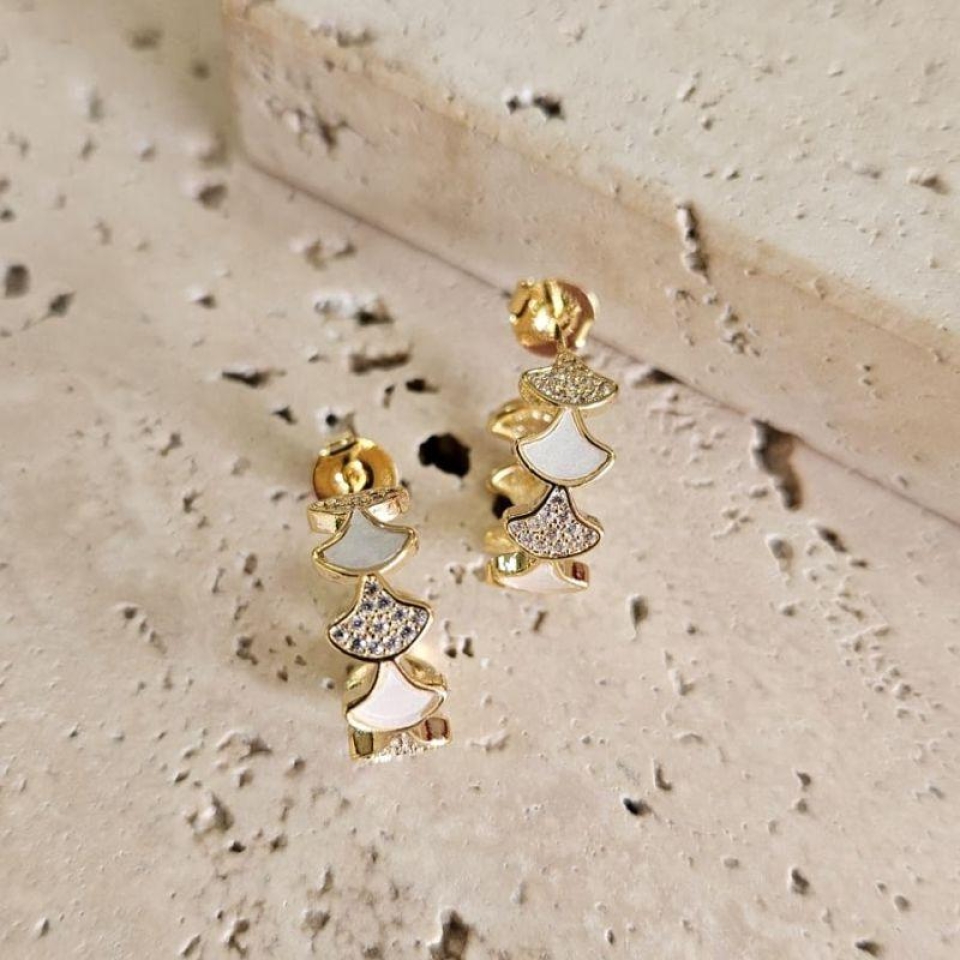 Brinco Argola Cravejada e Resina Branca