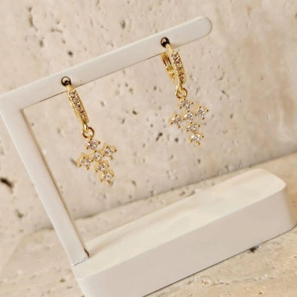 Brinco Argola Crucifixo Cravejado