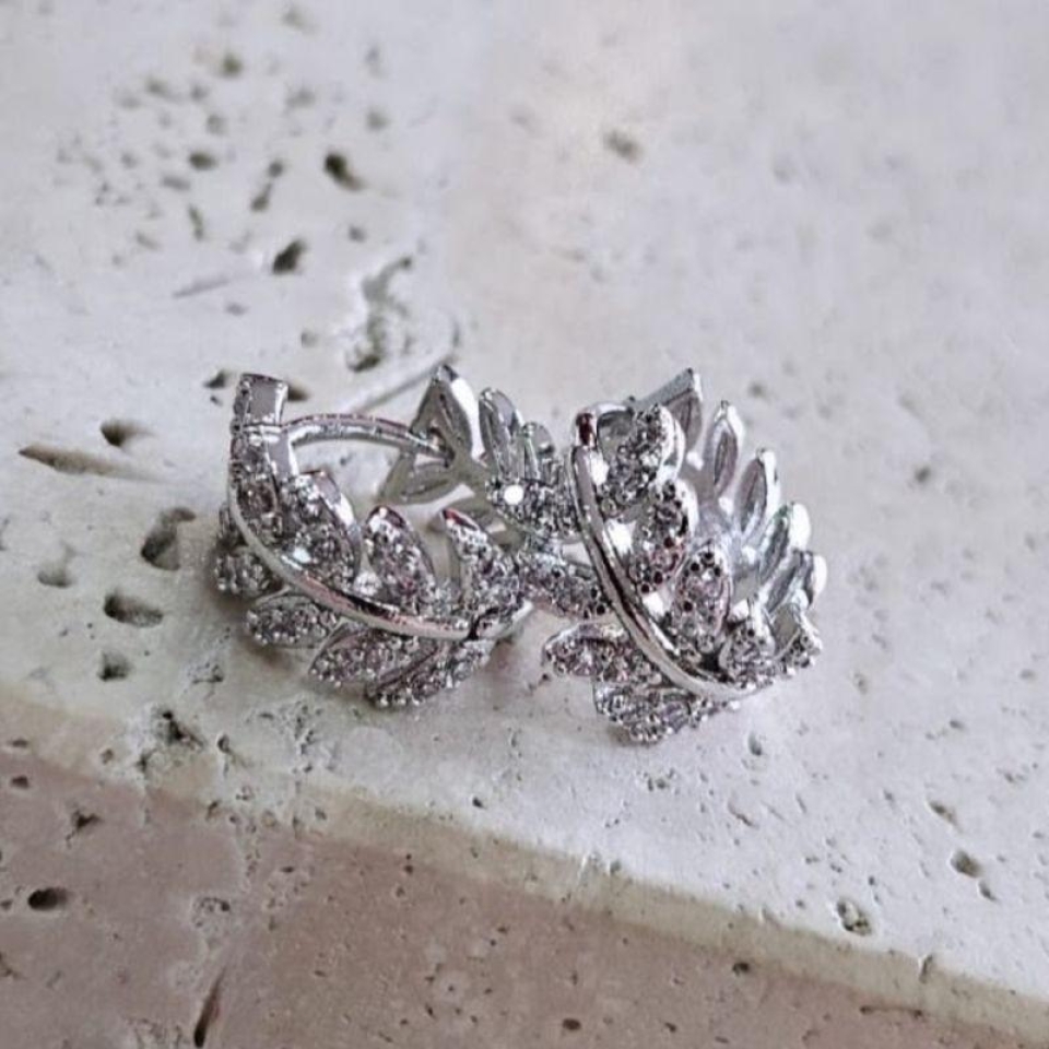 Brinco Argola Folhas Cravejada Media