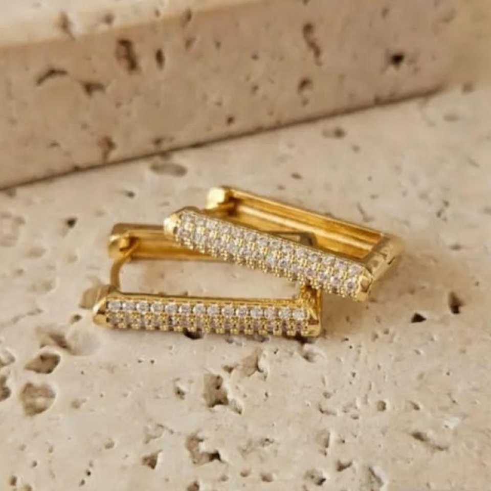Brinco Argola Retangular Cravejada GG