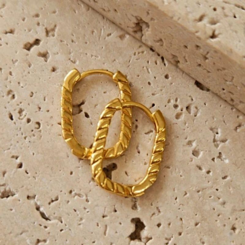 Brinco Argola Retangular Riscada Média