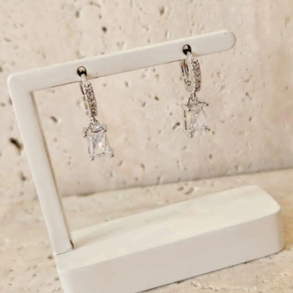 Brinco Argola Zirconia Retangular Pendurada