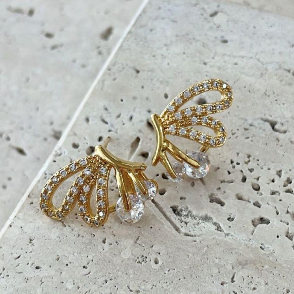 Brinco Asa de Borboleta Cravejada