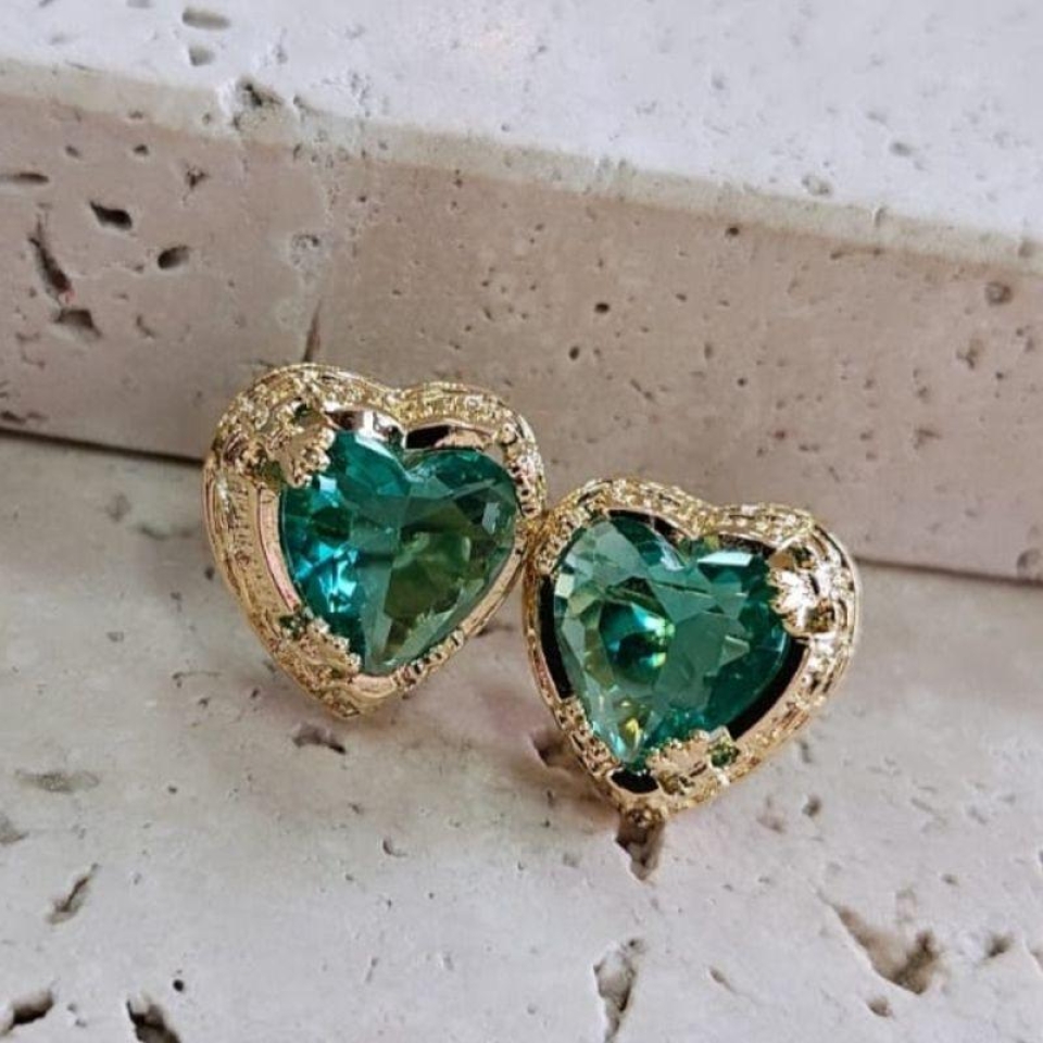 Brinco Coração Caixa Esmeralda
