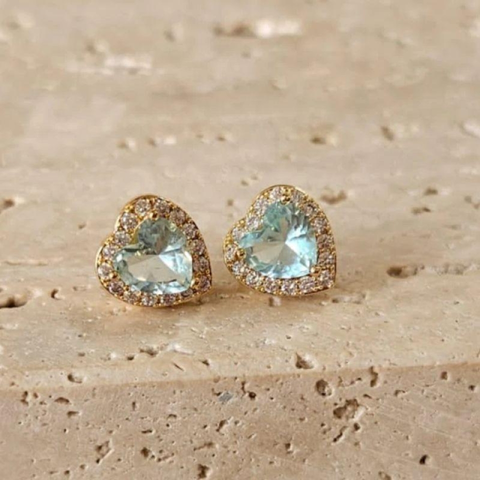 Brinco Coração Pedra Azul Medio