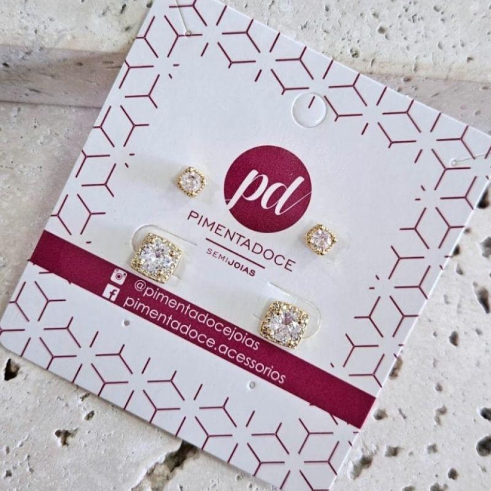 Brinco Dupla Quadrado Cravejado Zirconia Cris... Brinco Dupla Quadrado Cra... R$ 116,00 3x de R$ 38,67