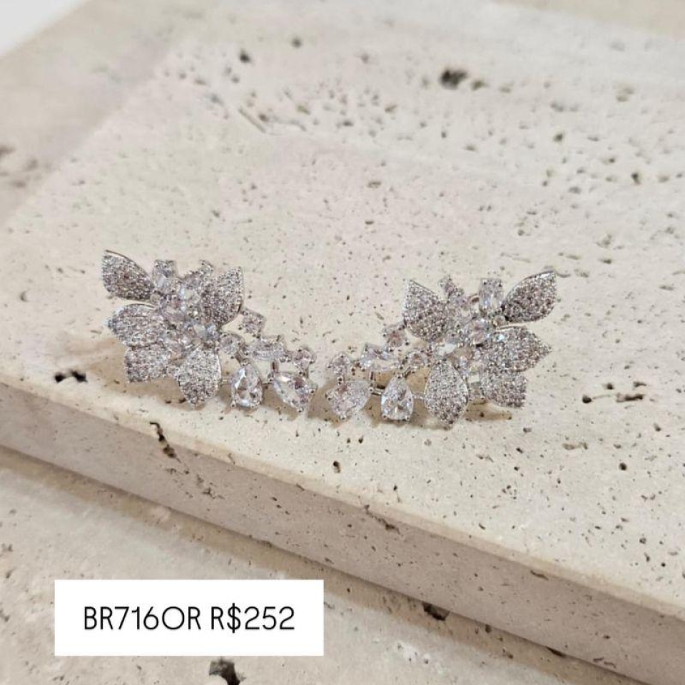 Brinco Folhas Cravejadas e Zirconias