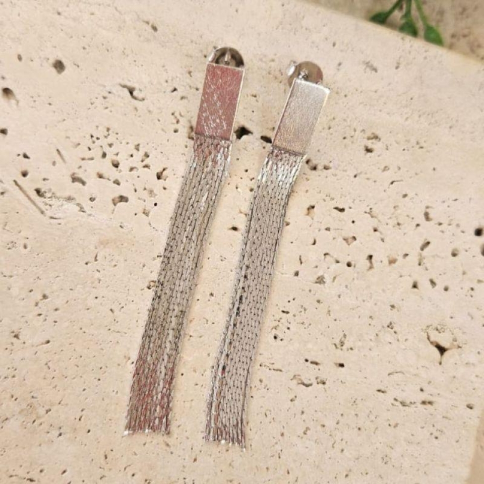 FECHAROs brincos franja com base retangular são sinônimo de elegância moderna.