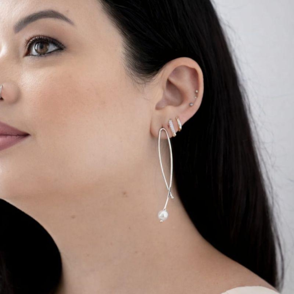 Brinco Gold Perola Branca