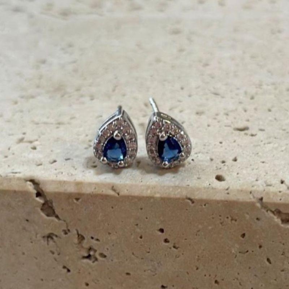 Brinco Gota Azul Cravejado Mini