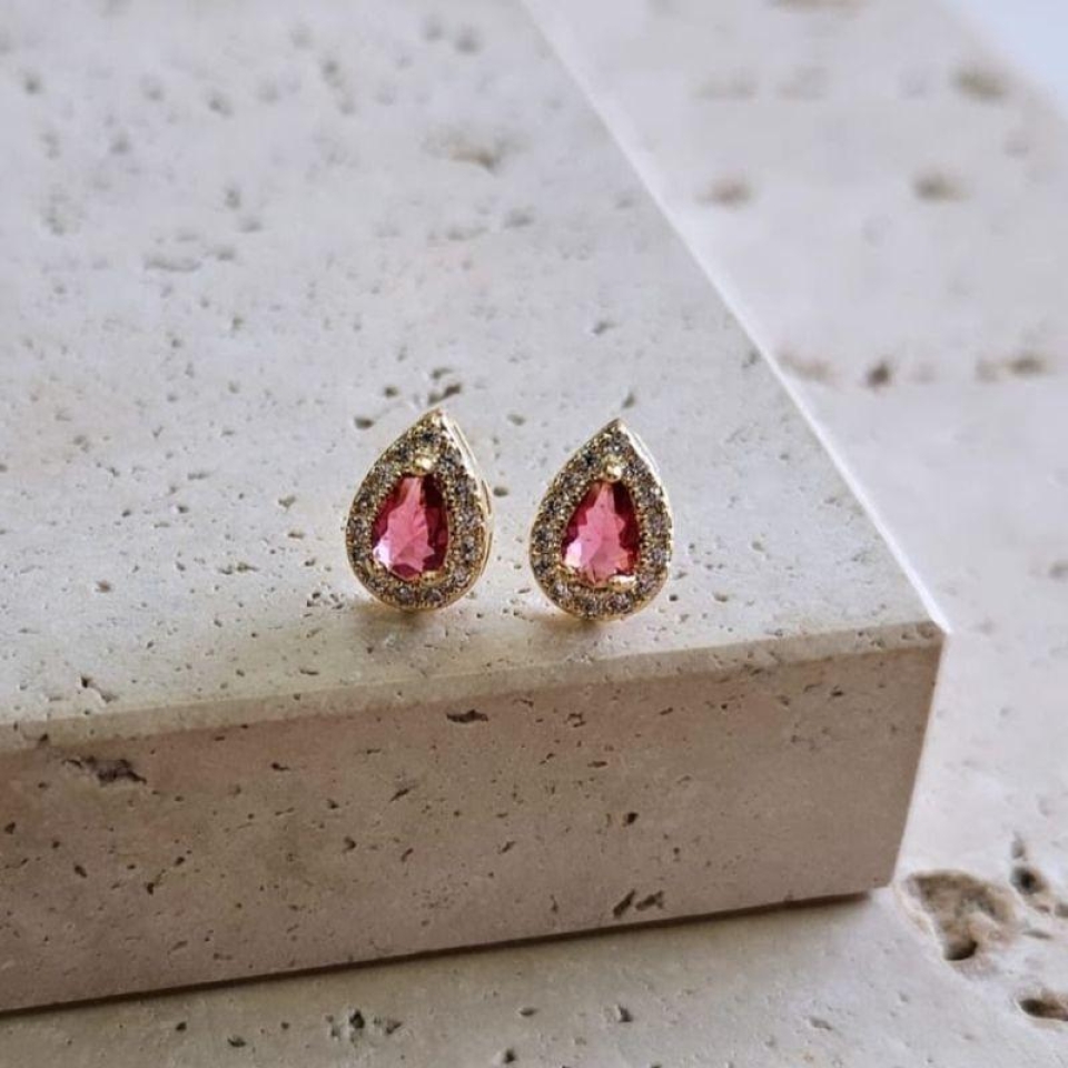 Brinco Gota Rubi Cravejada Med