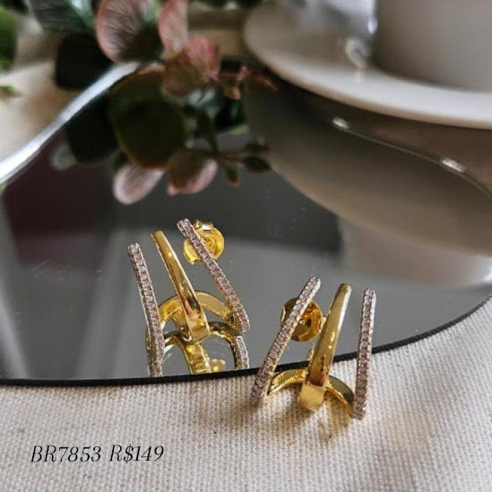 Brinco Meia Argola Chapa e Riscada