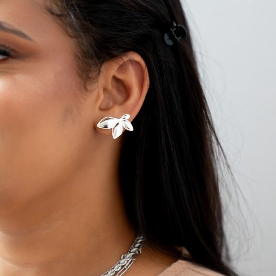 Combine um vestido floral com sandálias baixas. O brilho prateado dos brincos contrasta lindamente com estampas leves, deixando o visual ainda mais delicado. Use com cabelo solto ondulado ou rabo de cavalo baixo para destacar o formato das asas.