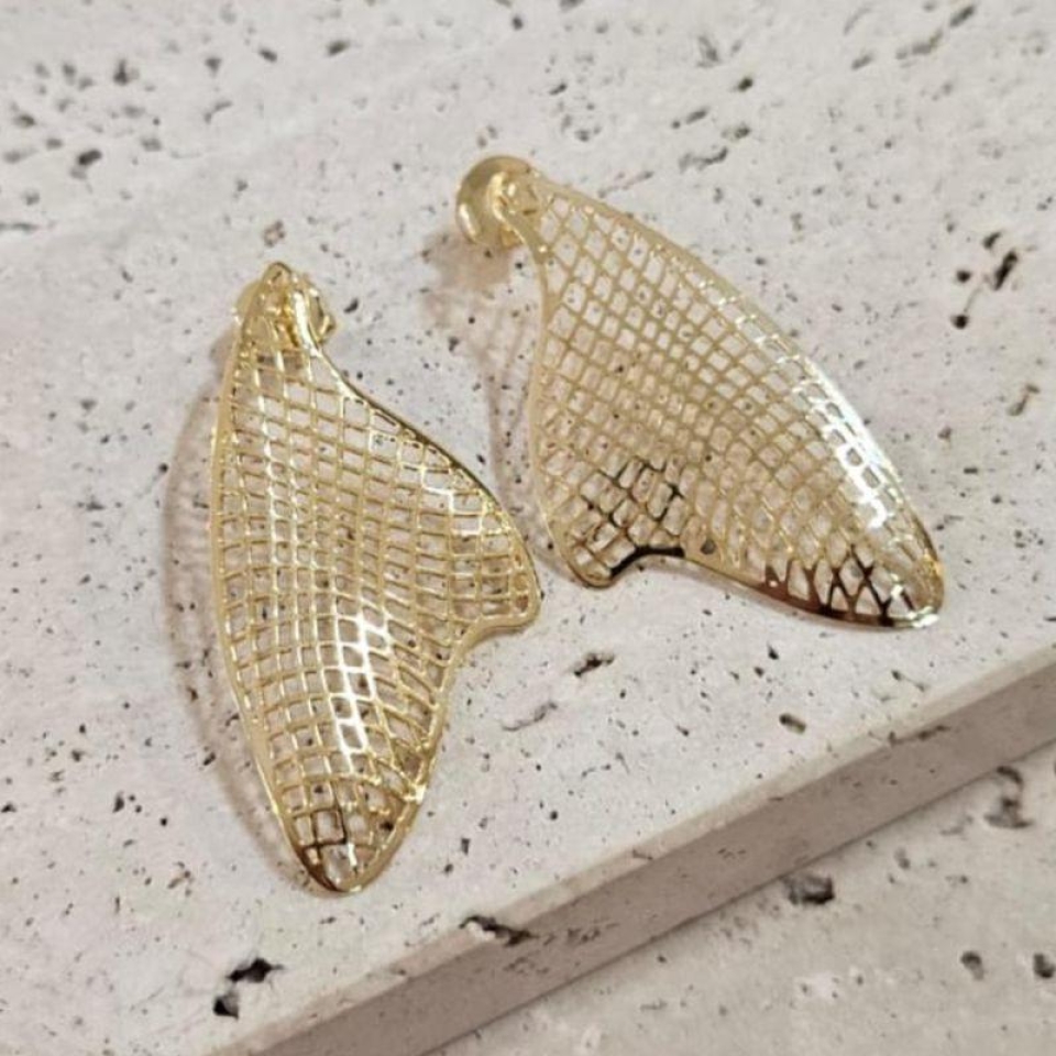 A peça apresenta formato assimétrico e acabamento delicadamente trabalhado, criando um efeito visual leve e sofisticado. O desenho vazado garante movimento e brilho na medida certa, deixando o brinco marcante sem pesar.