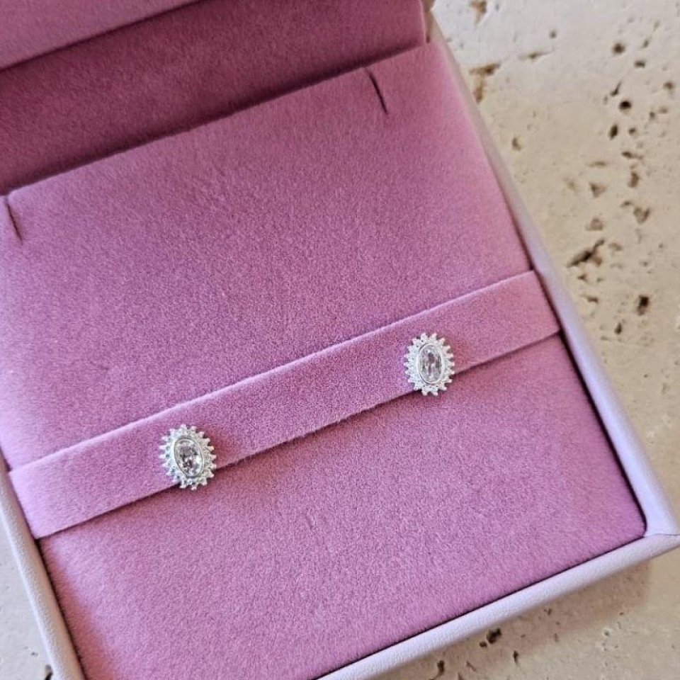 Brinco Oval Cravejado Mini Prata