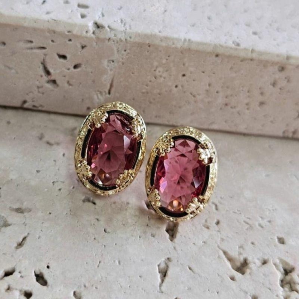 Brinco Oval Pedra Rubi Caixa