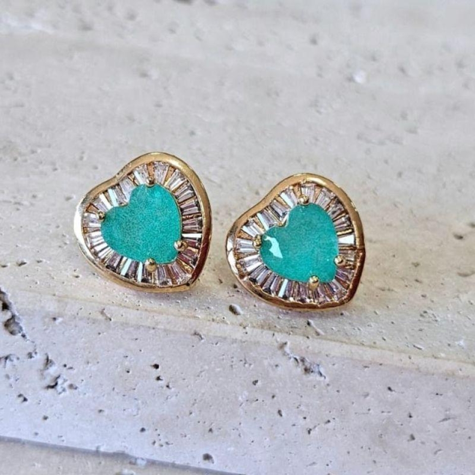 Brinco Pedra Coração Verde
