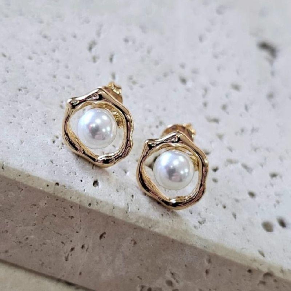 Brinco Perola Base Redonda Trabalhada