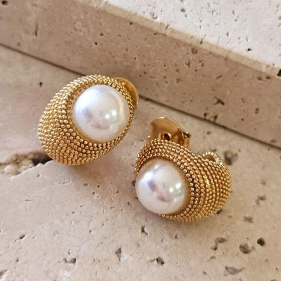 Brinco Pontilhado com Perola Curto