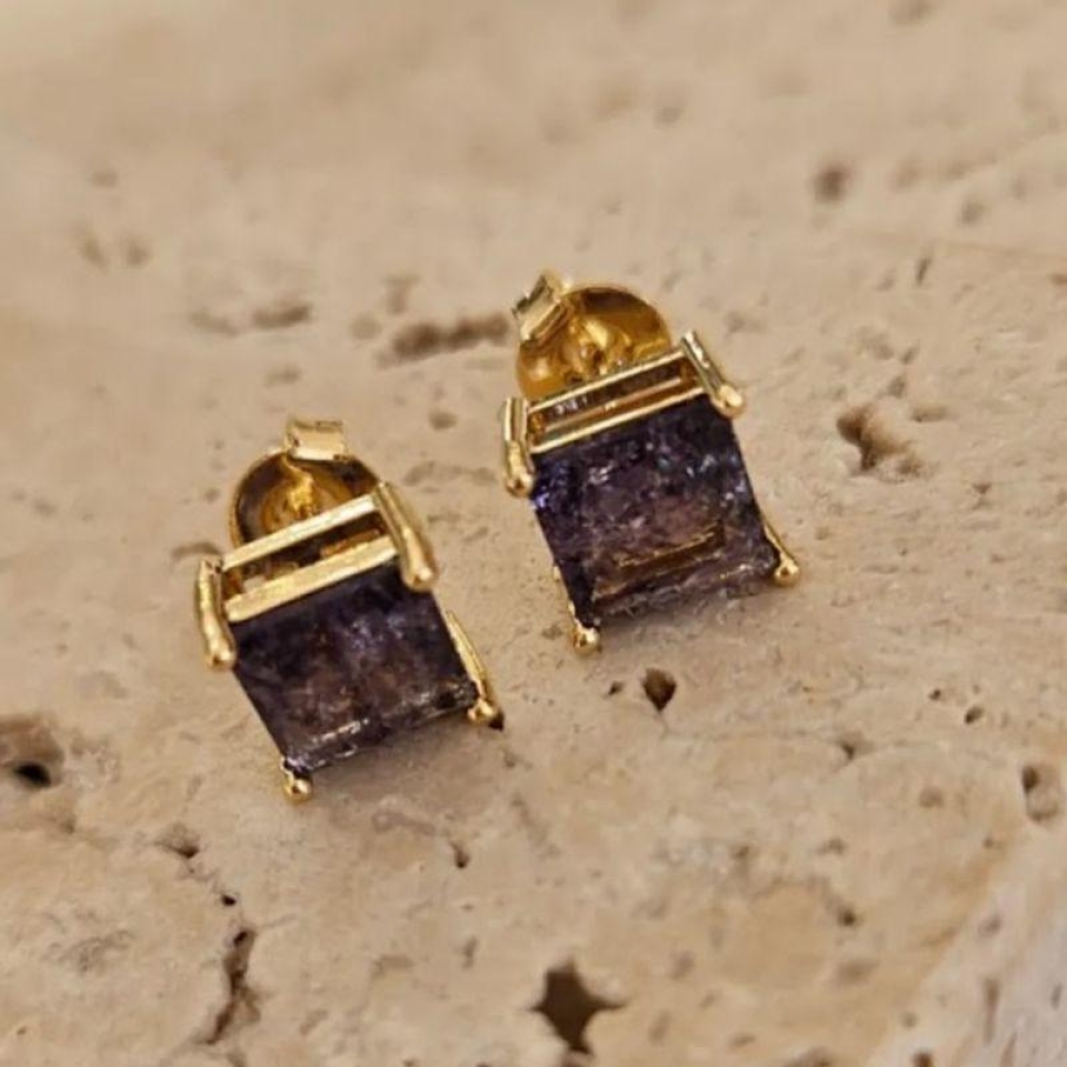 Brinco Quadrado Pedra Fusion Roxa