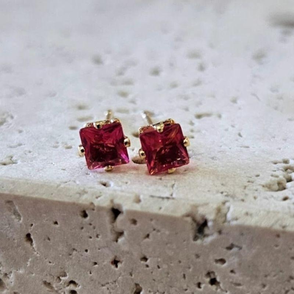Brinco Quadrado Pedra Rosa Peq