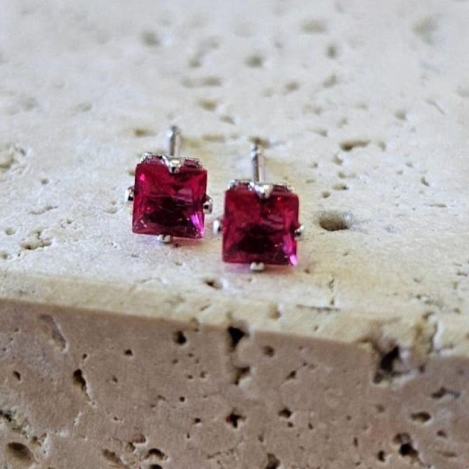 Brinco Quadrado Pedra Rosa Peq