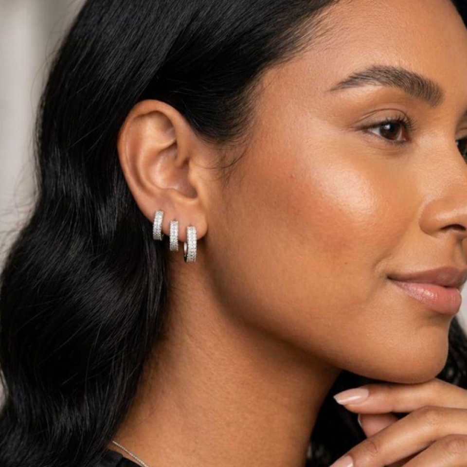 Brinco Trio Argola Cravejada 2 Fileiras