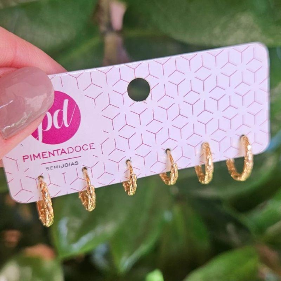Brinco Trio Argolinha Riscada