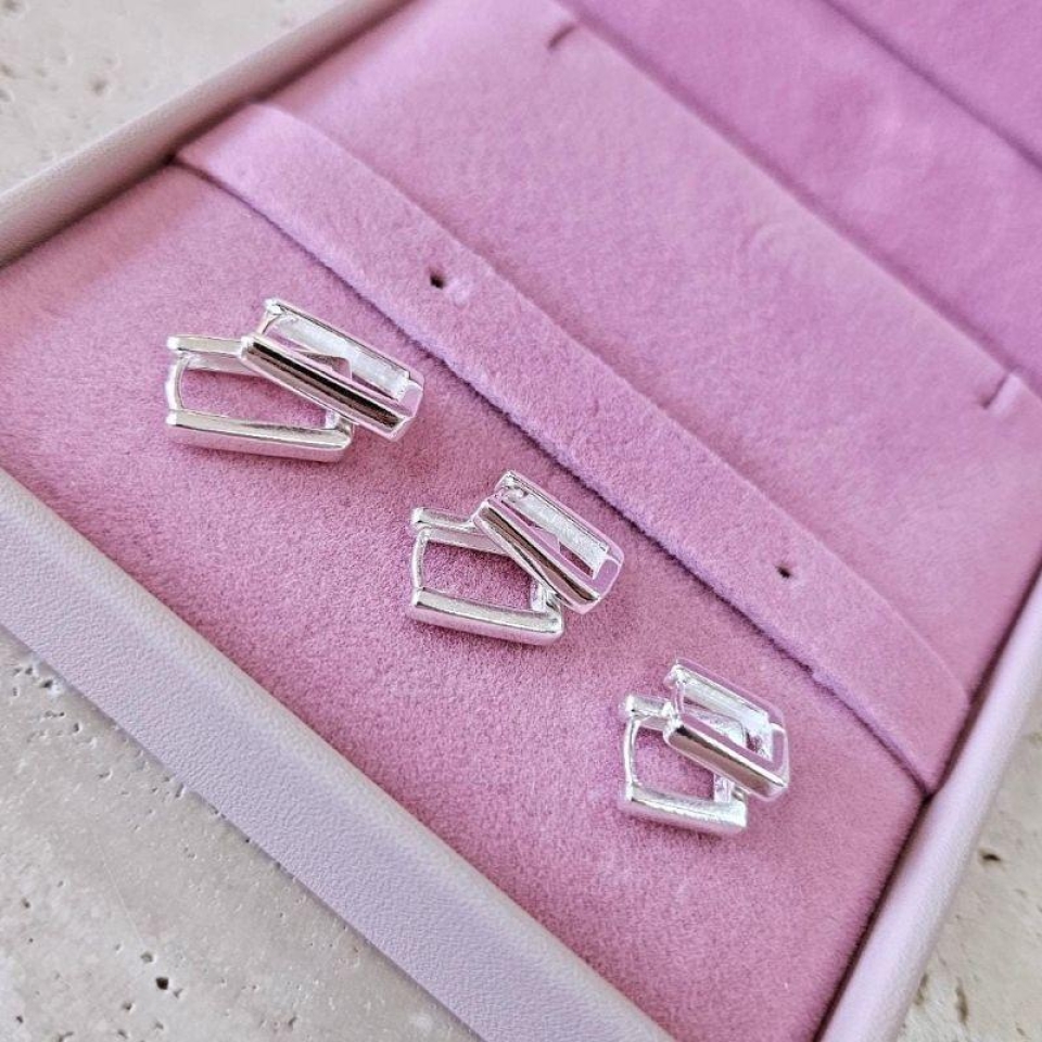 Brinco Trio de Argolas Retangular Prata