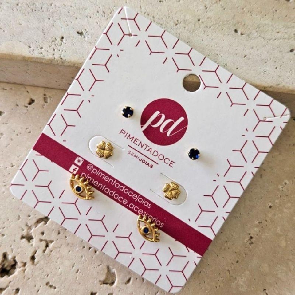 Brinco Trio Olho/Trevo/Azul