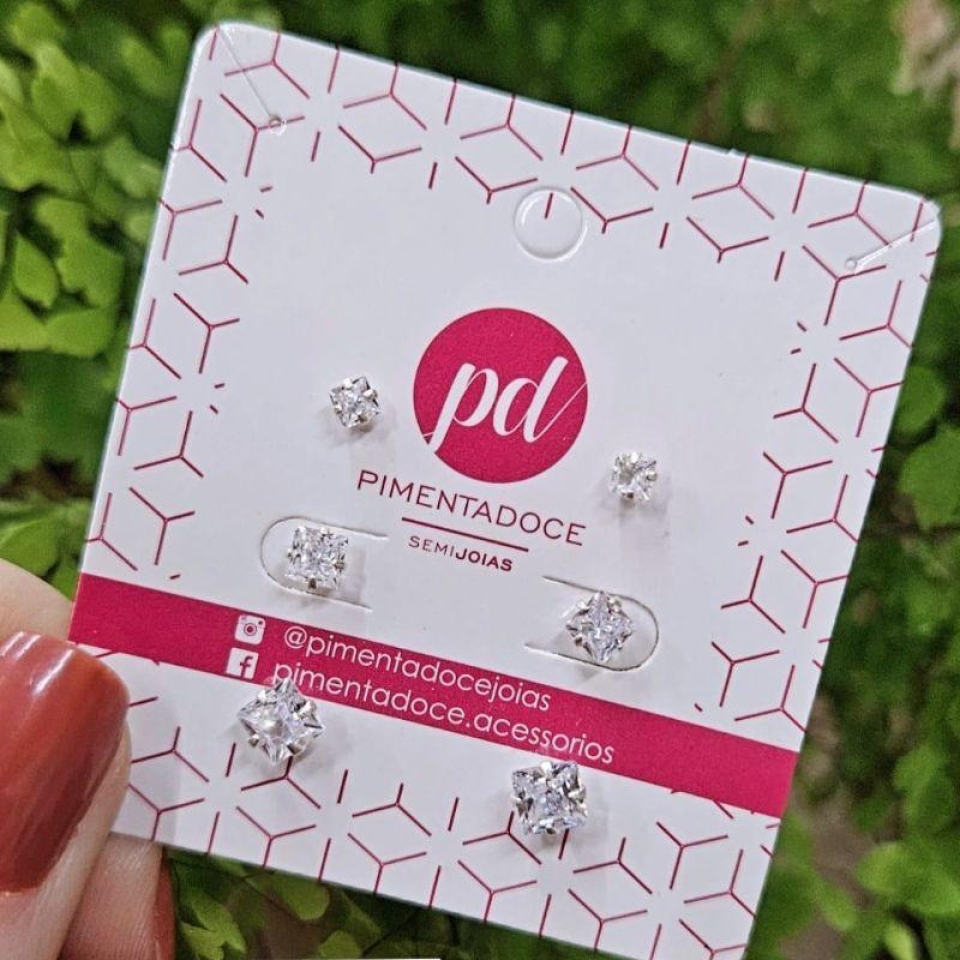 Brinco Trio Zirconia Quadrada Prata