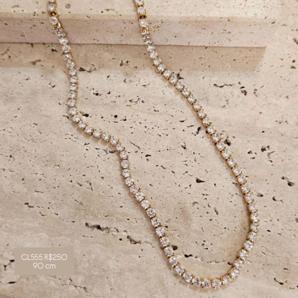 Gargantilha Dupla Corrente Cadeado e Baguetes... Gargantilha Dupla Corrent... R$ 269,00 3x de R$ 89,67