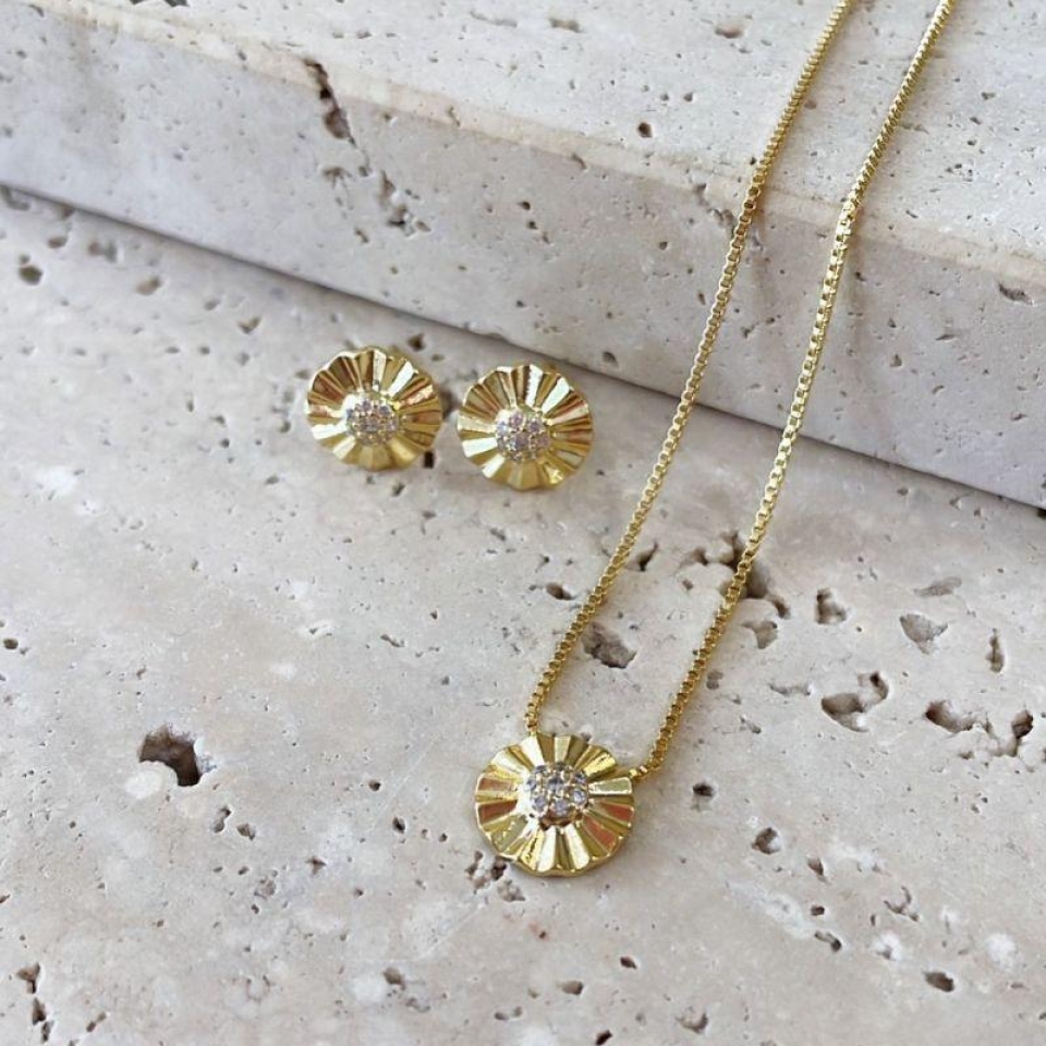 Conjunto Girassol Miolo Cravejado 40+5cm