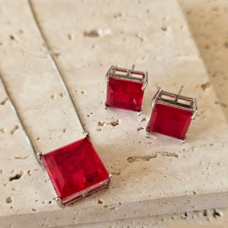 Conjunto Pedra Fusion Quadrada Vermelha 45cm