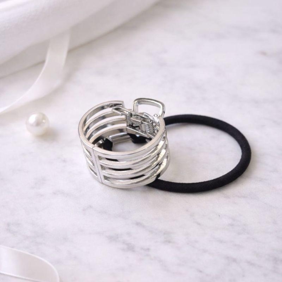 FECHARElástico de cabelo com acabamento metalizado e detalhe em listras, moderno e estiloso. Confortável e resistente, prende os fios com segurança enquanto adiciona um toque diferenciado ao penteado.